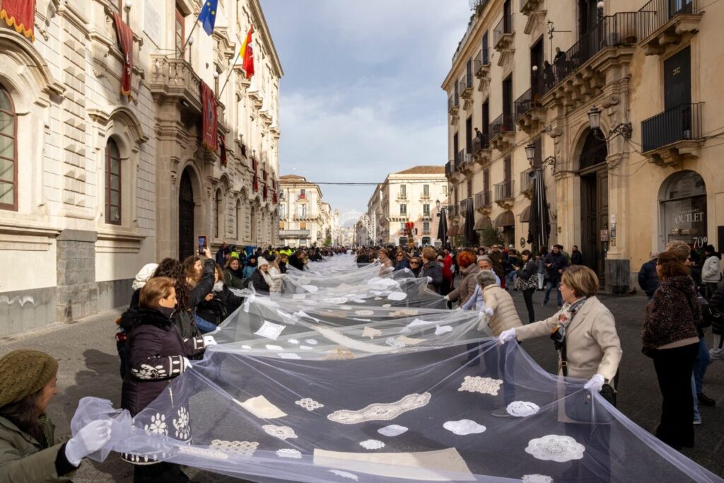 🌹Giorno 3 febbraio si è tenuta l’anteprima dell’opera corale e partecipativa “Tu sei Agata” ideata dall’artista palermitano Domenico Pellegrino: oltre 400 volontari hanno portato il velo lungo circa 300 metri nel cuore dei festeggiamenti.