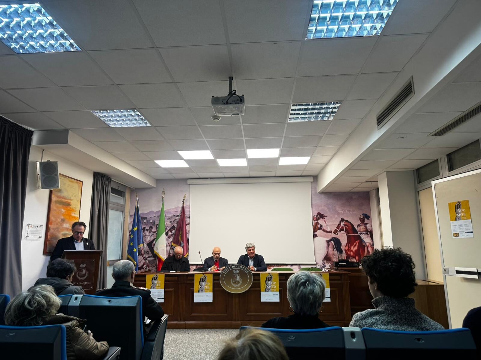 Presentato ad Acireale il programma 2026 di “Gennaio – Il mese dell’Arte Sacra”, alla presenza dell’assessore alla Cultura Enzo Di Mauro, Don Agostino Russo, vicario generale della Diocesi di Acireale e Michelangelo Patanè, presidente dell’Accademia Zelantea di Acireale. Tra le iniziative in programma, diverse mostre legate ad artisti acesi e al culto di San Sebastiano, compatrono della città, proprio a lui è dedicato un dipinto realizzato dal giovane artista romano, Michelangelo Torretti.