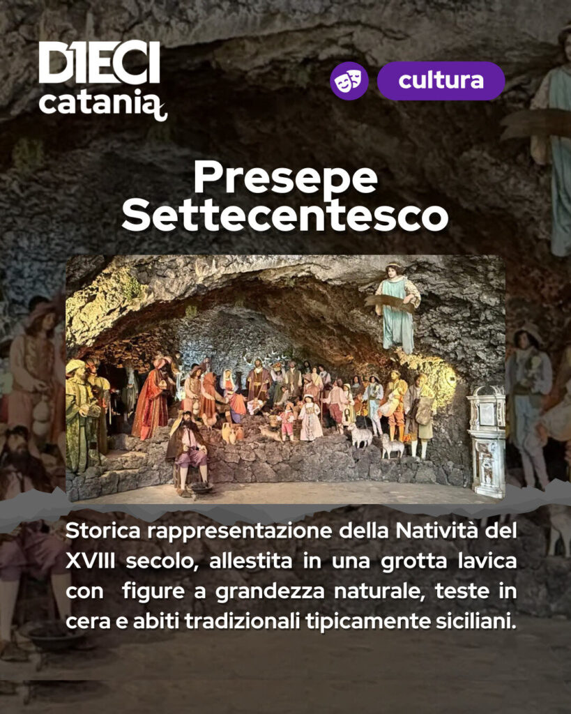 L’atmosfera magica del Natale, ad Acireale si arricchisce con la presenza dei tradizionali presepi, ognuno realizzato con tecniche differenti. Passeggiando tra le vie barocche della città, dunque, potrete ammirare alcune tra le rappresentazioni più suggestive: il Presepe Settecentesco, realizzato all’interno di una grotta nella chiesa Santa Maria della Neve, la Mostra dei Presepi Artigianali Artistici, quella della Stella Di Betlemme, il Presepe Artigianale Siciliano, allestito all’interno della Basilica dei SS. Apostoli Pietro e Paolo e infine, il Monumentale Presepe Napoletano, realizzato all’interno della cripta della Basilica di San Sebastiano.