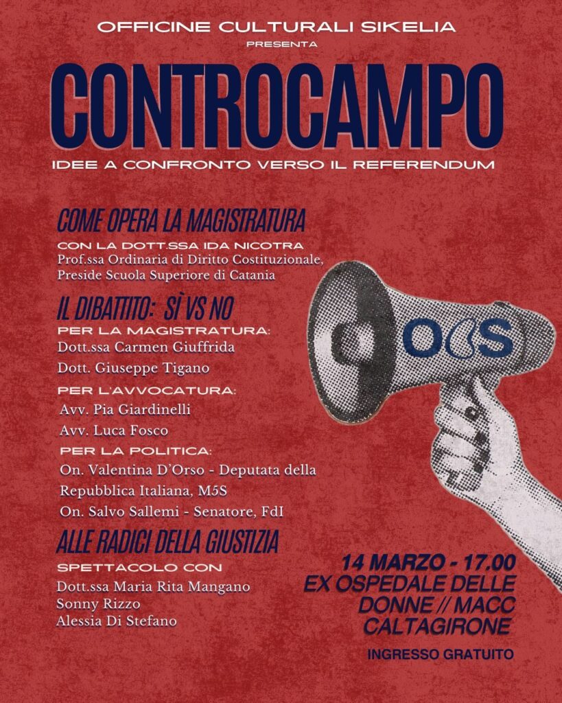 Officine Culturali Sikelia organizza un incontro aperto alla cittadinanza per approfondire il funzionamento della magistratura e analizzare le motivazioni del sì e del no in vista del prossimo referendum. L’iniziativa vuole offrire strumenti utili per informarsi e sviluppare un’opinione autonoma e consapevole, andando oltre slogan e semplificazioni.