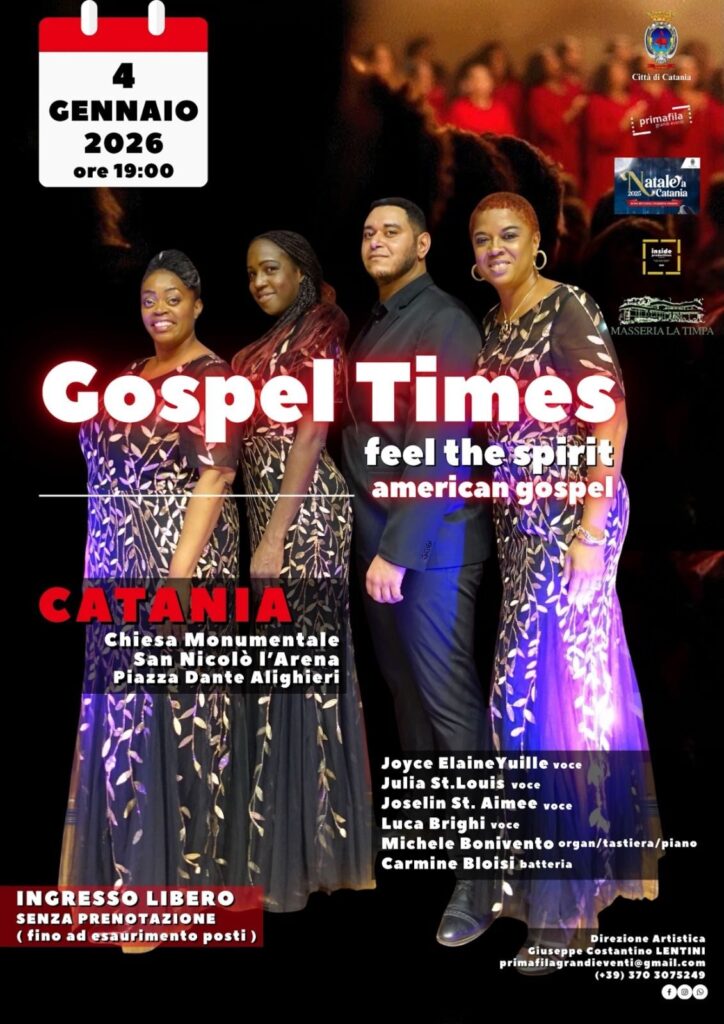 Il 4 Gennaio, la Chiesa di San Nicolò l’Arena, a Catania, ospiterà a partire dalle ore 19:00 “Gospel Times – Feel The Spirit” un concerto in stile american gospel, con ingresso gratuito fino a esaurimento posti.