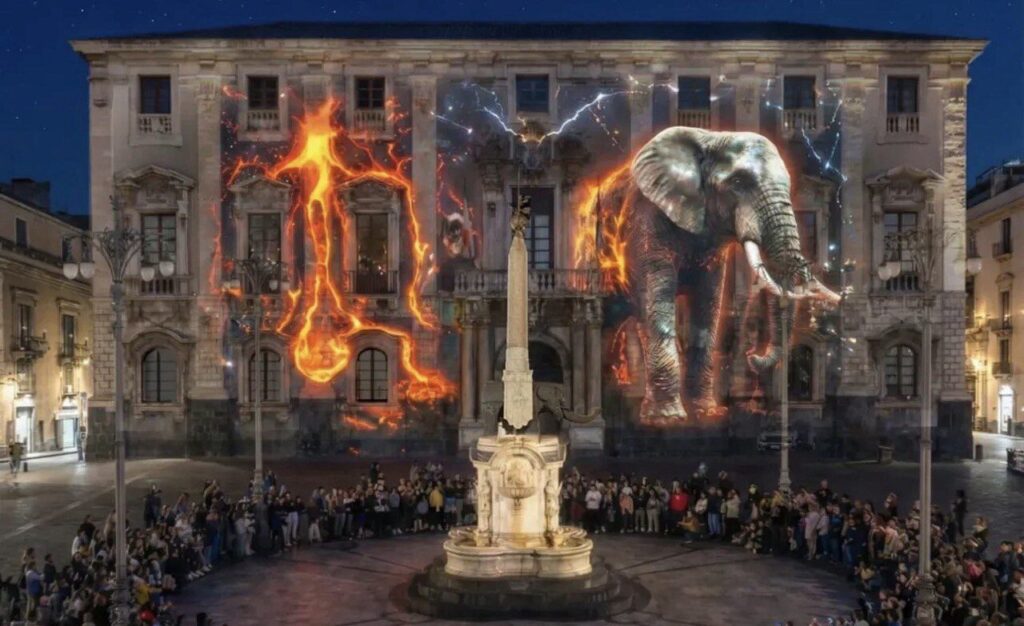 La facciata del Municipio di Catania, in Piazza Duomo, accoglie la storia del mago Eliodoro e della sua creatura, il cosiddetto “liotru” di pietra lavica con una proiezione videomapping a cura dell’agenzia Sullaluna in collaborazione con One Stepping.