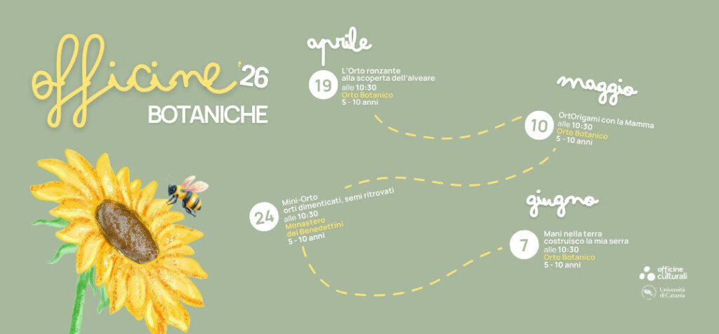 Domenica 19 aprile alle 10.30 all’Orto Botanico dell’Università di Catania prende il via il ciclo di laboratori “Officine Botaniche”, dedicato a bambini e bambine.