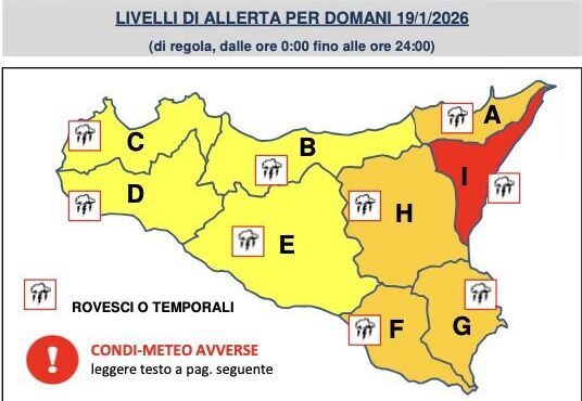 Per lunedì 19 gennaio 2026 è stata diramata allerta meteo rossa su Catania, a causa di possibili nubifragi, vento molto forte e criticità idrogeologiche diffuse.
